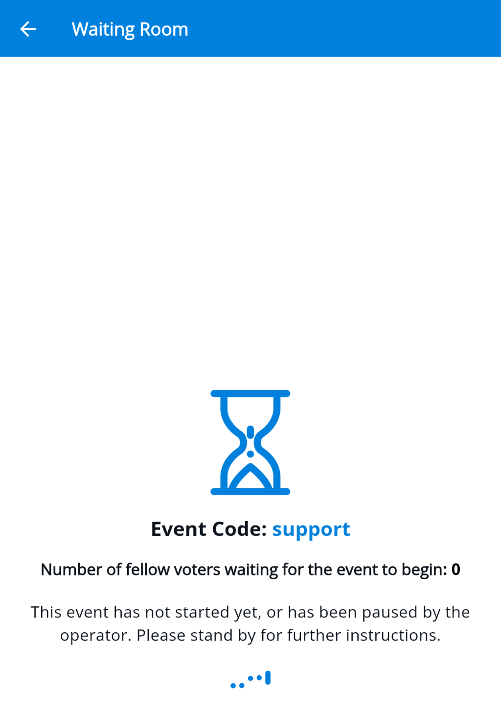 When you correctly input the join code, you will be redirected to a waiting room (shown below) if the session is not active.