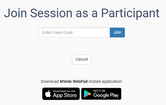 First, make sure that you have set up a join code for users to enter when arriving to your session. You also want to make sure that the session is set up to your preferences. If you want your participants to join the session via the mobile app, they can find the "Meridia MVOTE" app in the IOS or Android Appstore. Alternatively, you can use these links: