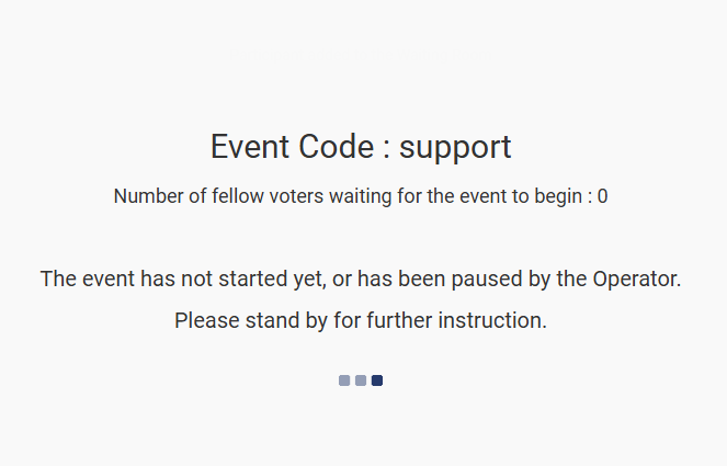 After correctly entering in their personal information, the user will be redirected to a blank screen with the Meridia logo if there is not an active vote. If the vote is active/open, then the user will see the topic and answer choices and will be able to cast their vote.