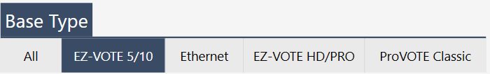 - Make sure that your base is correctly switched to USB or Ethernet (NET) mode on the physical switch on the back of the receiver. Whichever mode you are using, make sure that the intended mode is selected within the EZ-VOTE Connect application as well. You can find the base type settings on the bottom left side of the EZ-VOTE Connect settings page. If you want to connect the receiver in USB mode, select the EZ-VOTE 5/10 base type, but if you wish to use ethernet, select the "Ethernet" base type. If the modes do not match on the back of the receiver and within the toolkit app, then the base will not connect. Select the connect button on the base type page when you are ready to connect.