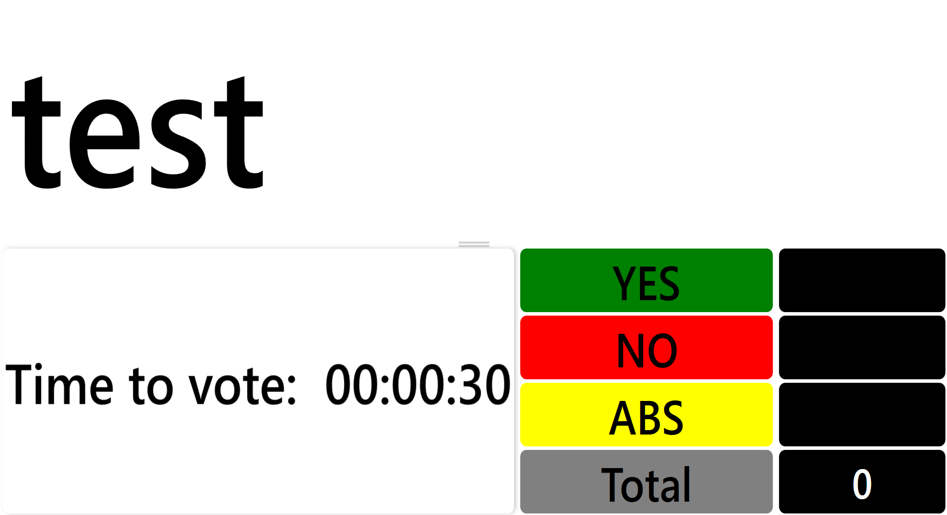 NOTE: that the countdown timer feature is only available when using the "No Grid" option and toggling the Participant Grid will get rid of the countdown timer. I set my countdown timer for 30 seconds, which means that the audience will see the projected view shown below, when I open the vote. Changing the length of the timer will affect all future agenda items, but you cannot change the countdown timer length in the middle of a vote.